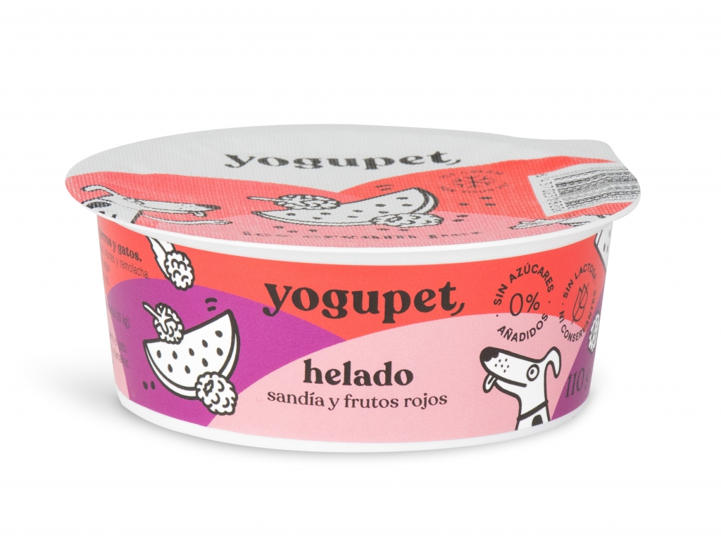 En los días calorosos, no hay nada mejor que un helado de yogur con sandía y frutos rojos para hidratar y refrescar a nuestra mascota con ingredientes de máxima calidad.