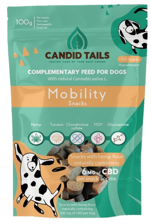 Estos Candid Mobility Snacks contienen aproximadamente 50 snacks por paquete, con cada snack aportando ~6 mg de CBD derivado de forma natural del cáñamo. Incluyen más de 5 ingredientes activos diseñados para apoyar la salud articular, promover una respuesta inmunológica saludable y proporcionar soporte cognitivo, siendo ideales para ayudar a tu mascota a envejecer de manera saludable.